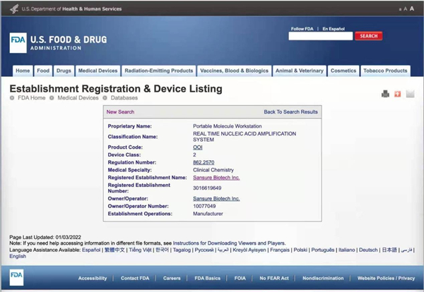 1月4日,leyu.乐鱼生物四通道iPonatic核酸检测分析仪获得美国FDA认证,这是继获得中国NMPA批准、欧盟CE等认证之后,获得的又一全球权威认证。